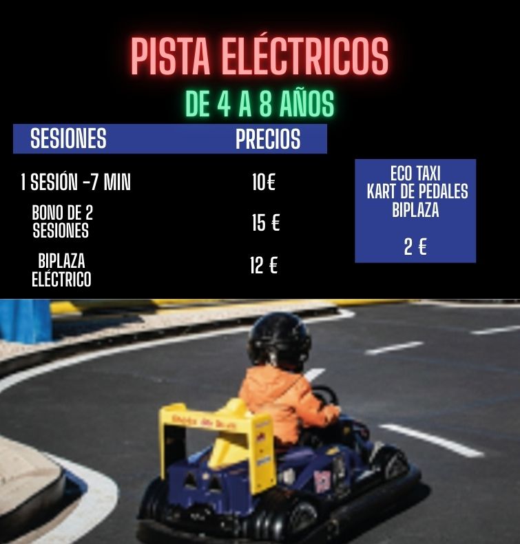 Sesiones de 10minutos. Bono s a usar por el mismo niño y el mismo día en sesiones alternas. En el kart biplaza el conductor tiene que ser mayor de 18 años